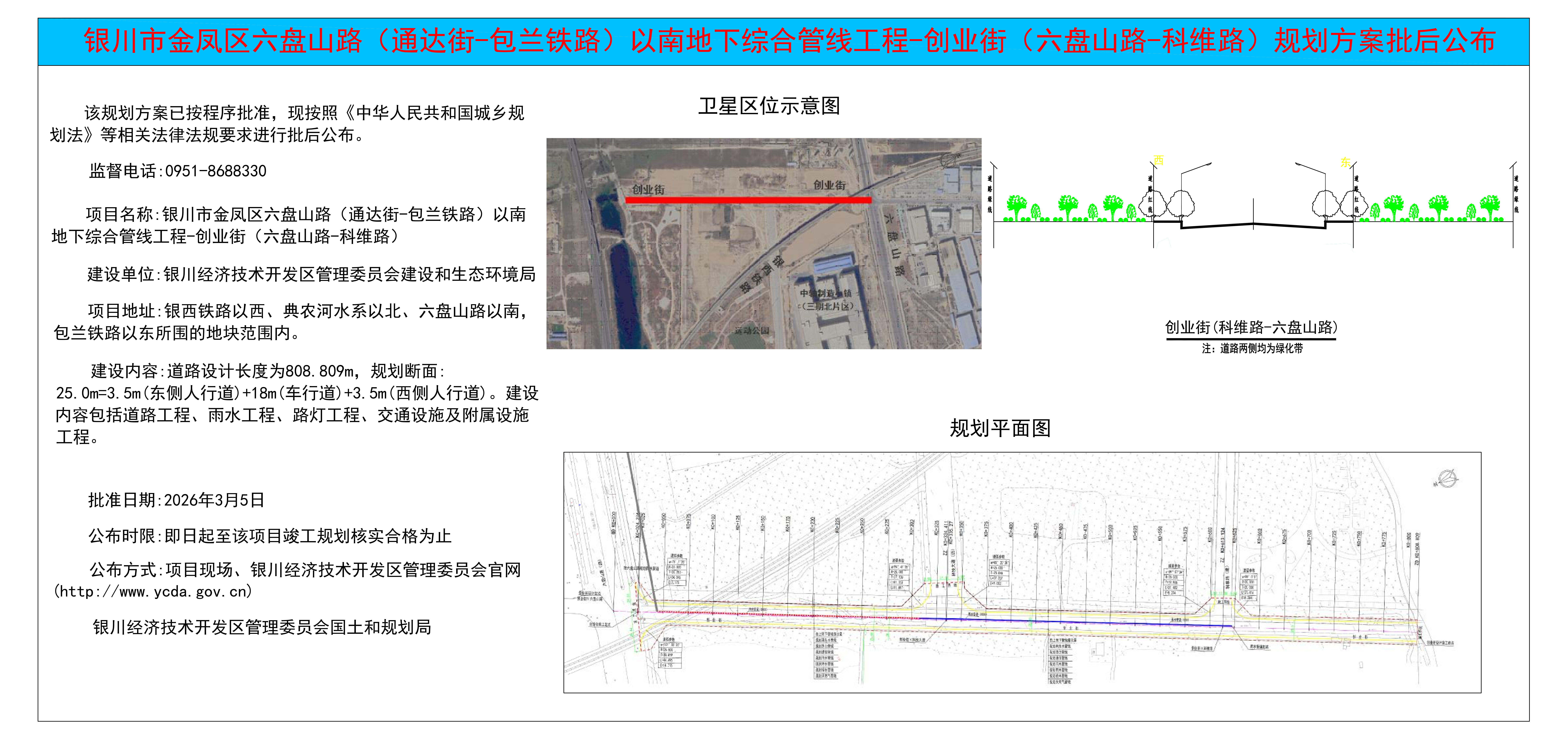 银川市金凤区六盘山路(通达街-包兰铁路)以南地下综合管线工程-创业街(六盘山路-科维路)规划方案批后公布