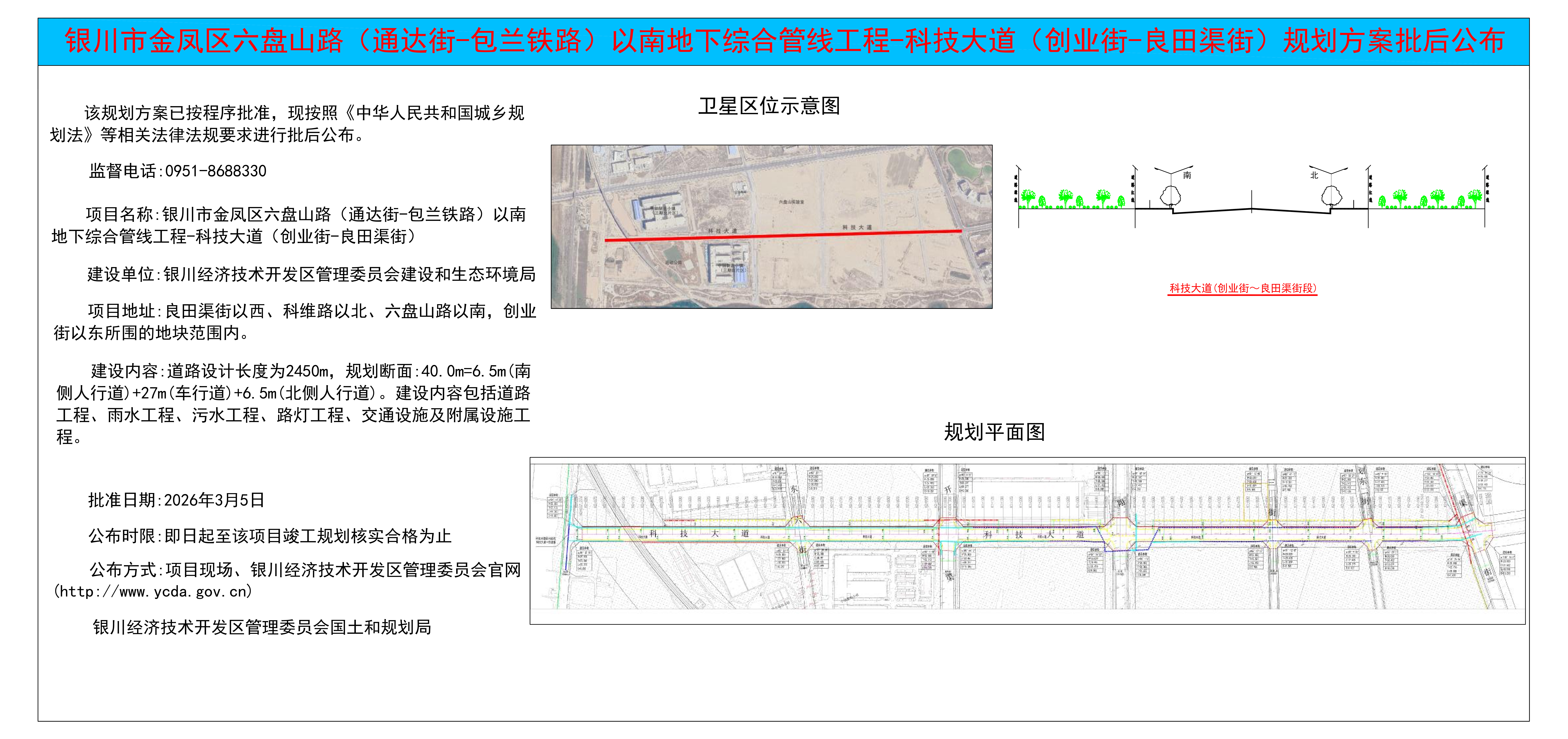 银川市金凤区六盘山路(通达街-包兰铁路)以南地下综合管线工程-科技大道(创业街-良田渠街)规划方案批后公布